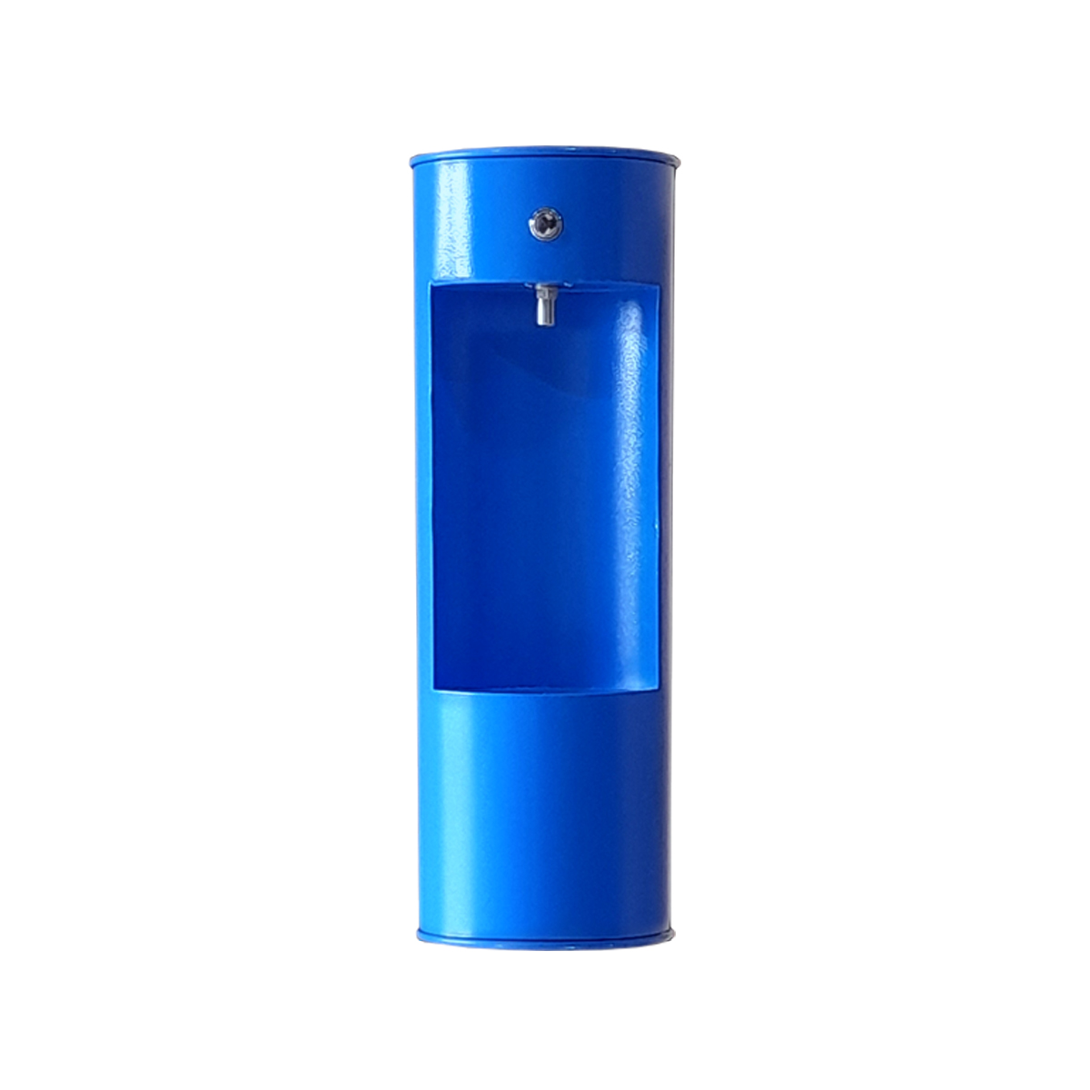 Our Outdoor bottle filler is manufactured from heavy duty stainless steel with a blue powder coated finish. Supplied with a manual push button valve making the bottle filling station easy to operate and a perfect way to re-fill water bottles and help reduce plastic bottle waste.